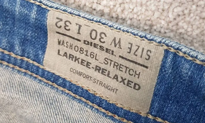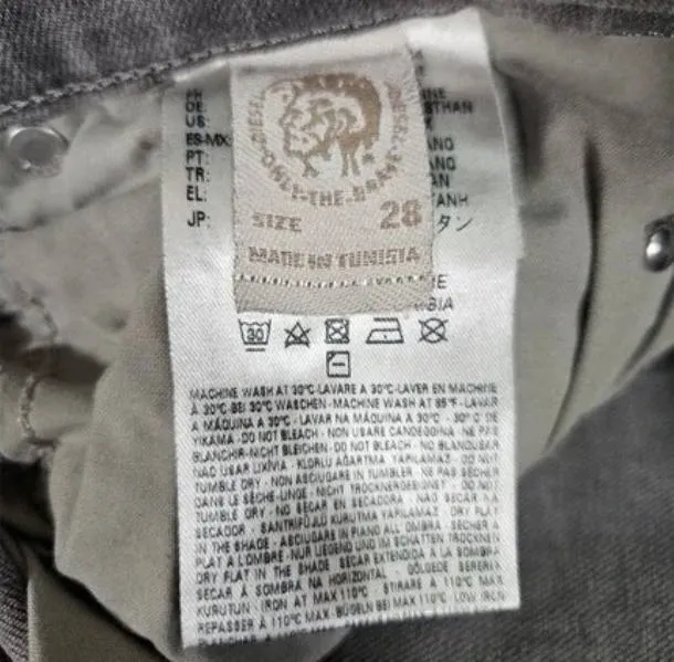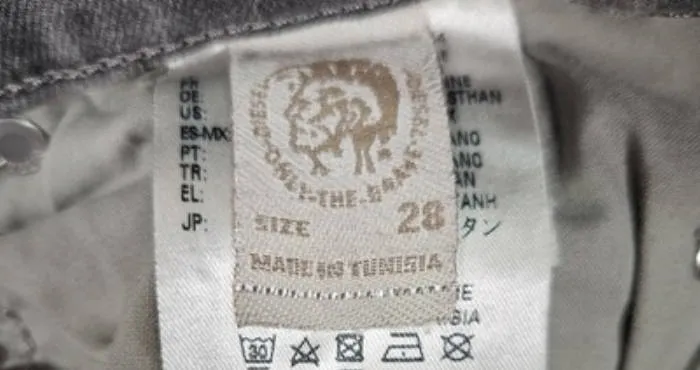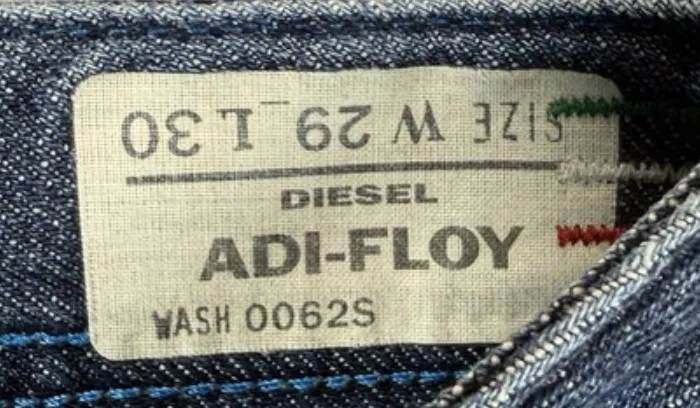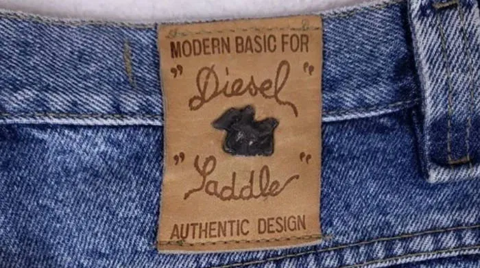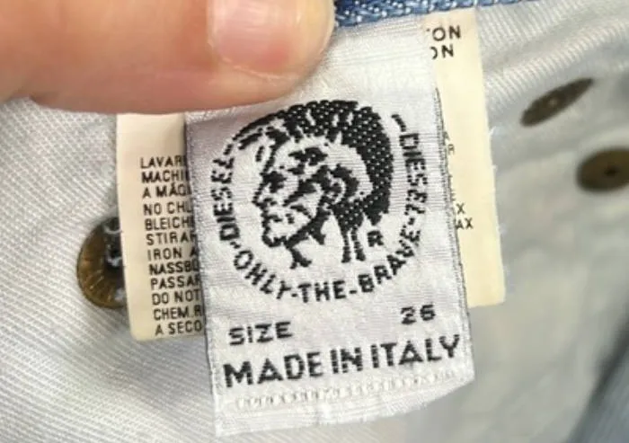 Diesel jeans typically include multiple internal labels, often with modern tracking features.
