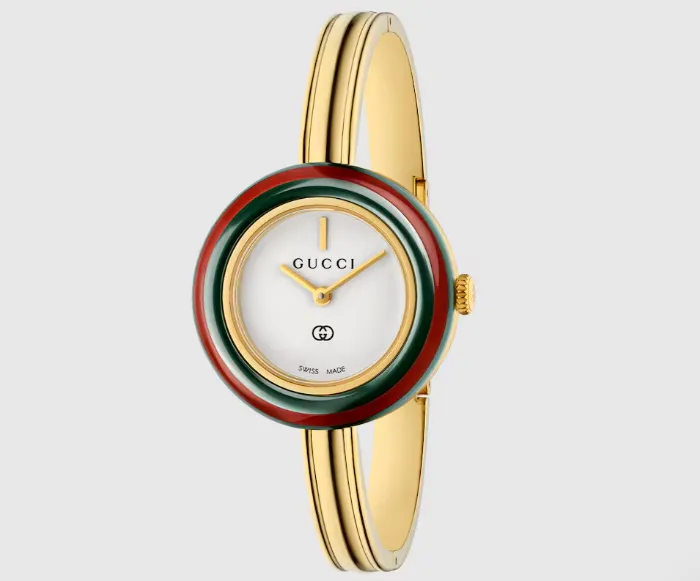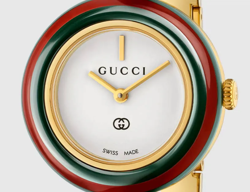 A bezel is the ring surrounding a watch's dial — and in Gucci bezel watches, this element often serves as a key design feature rather than just a functional component. Some versions feature interchangeable bezels with multiple colors or materials so you can change the look of your watch on the go, something that made certain vintage models especially iconic with collectors.