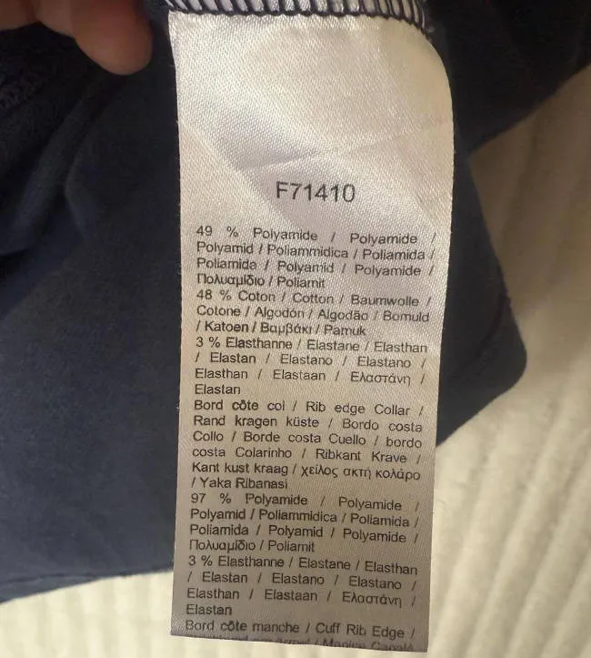 Multiple tags (care instructions, fabric composition)