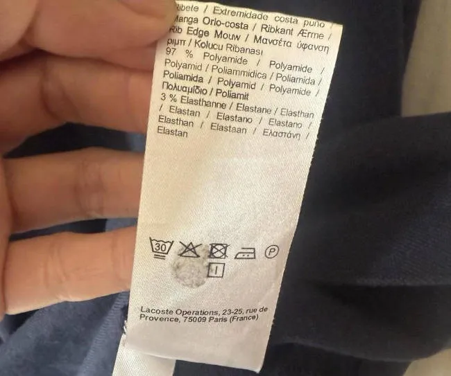 Authentic Lacoste polos include multiple inner labels.