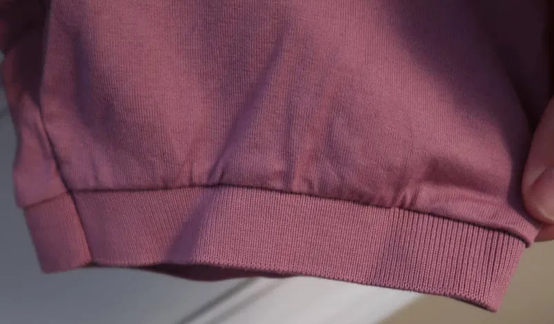 The Ribbing: The cuffs and collar are ribbed to prevent stretching and maintain shape over time.