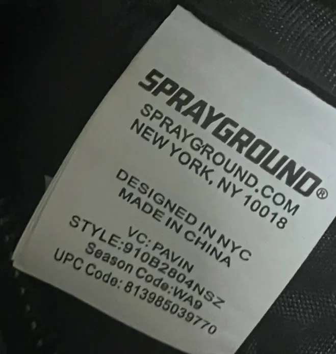 📌 Tip: Check the tag inside the backpack; authentic Sprayground tags include clear logos and precise stitching.