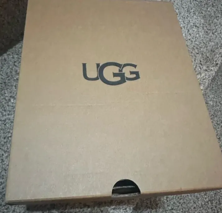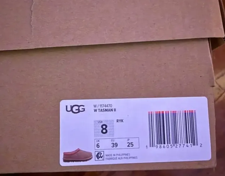 Authentic UGG Tasman slippers come in a sturdy, matte-finish box with sharp printing.