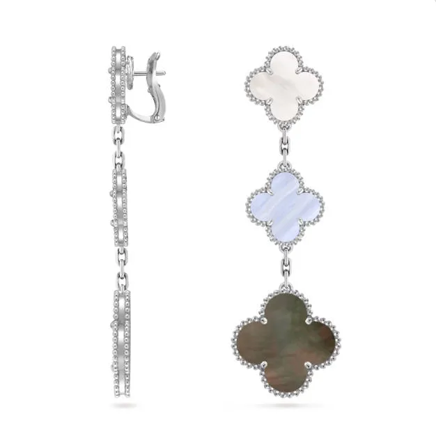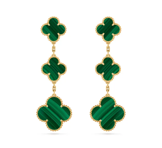 The Alhambra earrings/studs mainly include several iconic variations, distinguished by their motif sizes and design aesthetics: